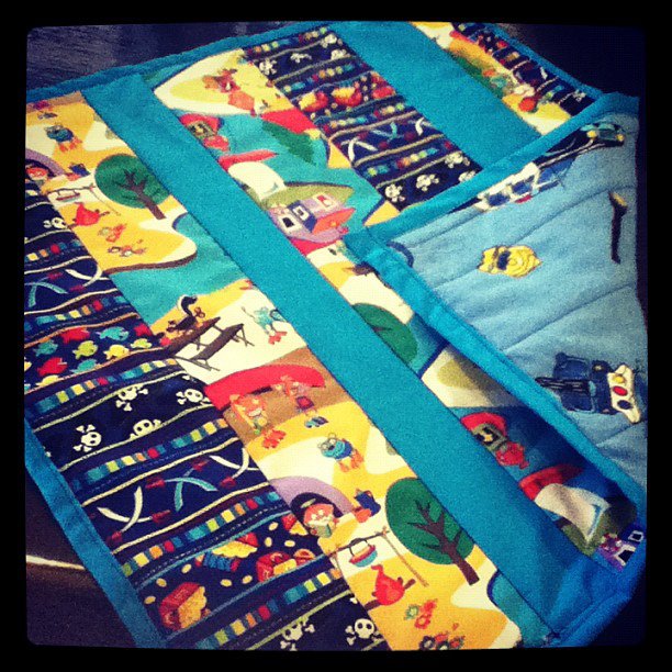 My two little lap quilt tops came together in no time! I chose a pale green backing, (which is in fact upcycled from one of my favourite 1000 thread count sheet sets, not very old at all, that had a little tear?!!) and got busy sandwiching the quilt top and the backing fabric around some cotton quilt batting. I used regular safety pins to hold the three layers nice and secure, and I actually found this step to be quite easy, and a little exciting, as I can see the quilts taking shape before my eyes!